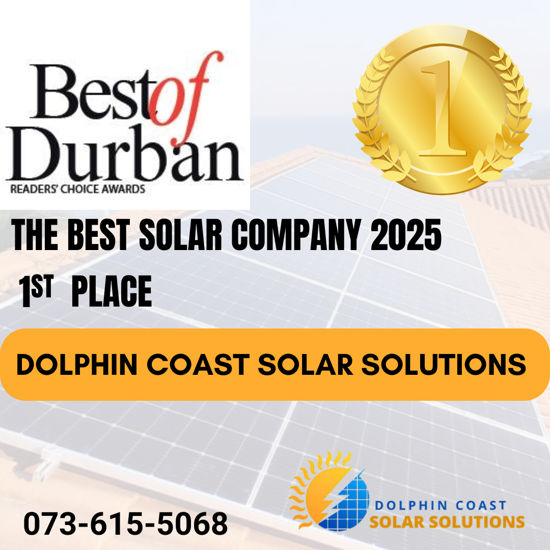 In The Media Our work has captured the attention of media platforms, business awards, and sustainability forums across South Africa and beyond. Here’s a glimpse of where we’ve been featured and recognized. Award Highlights Section Best of Durban 2025 – Solar Installer of the YearVoted #1 by Durban African Excellence Awards 2025Best Solar Installation Company 2025 - South Africa Sustainability Excellence Award 2025 Best of Ballito 2023 – Solar Installer of the YearVoted #1 by the Dolphin Coast community for outstanding solar service. Global Women Leadership Awards, Dubai 2024Awarded “Leader in Power and Energy” Celebrating women transforming industries through sustainability and tech KZN Top Businesswoman 2023Recognized for business excellence and community empowerment. Radio Life & StyleTo celebrate Women's Month, we have done short interviews with a select number of interesting and dynamic female entrepreneurs on the North Coast. East Coast Radio Interview – 2024Women Driving Change in the Energy Sector. A powerful discussion on leadership, innovation, and clean energy.